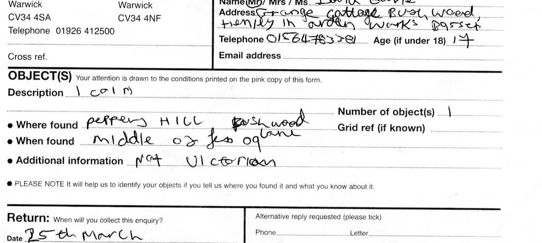 15 Victoria Jubilee medal found on the path from Lowsonford in 1940s