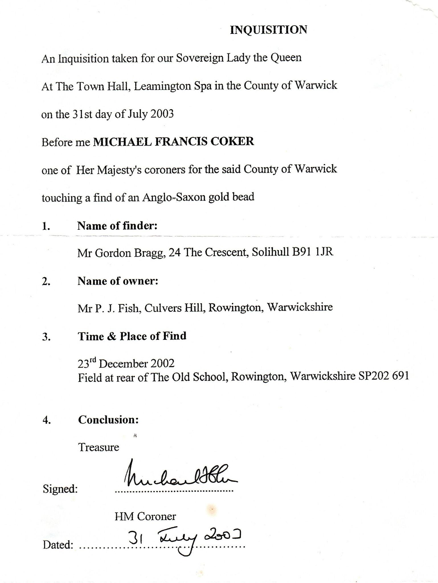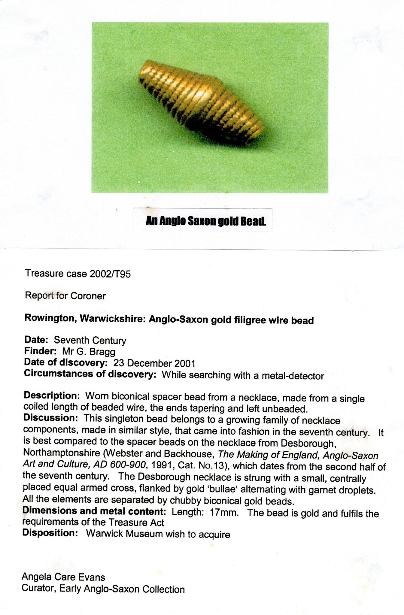 13 Anglo Saxon gold bead found at the rear of the old school in 2002