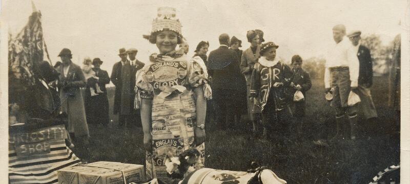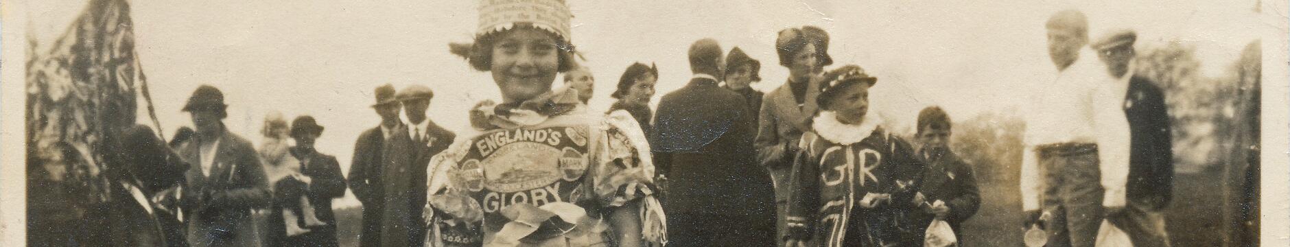 3 An under 14 fancy dress competition. 1937 Coronation celebrations. Soldier in the front row is Theo Christophers