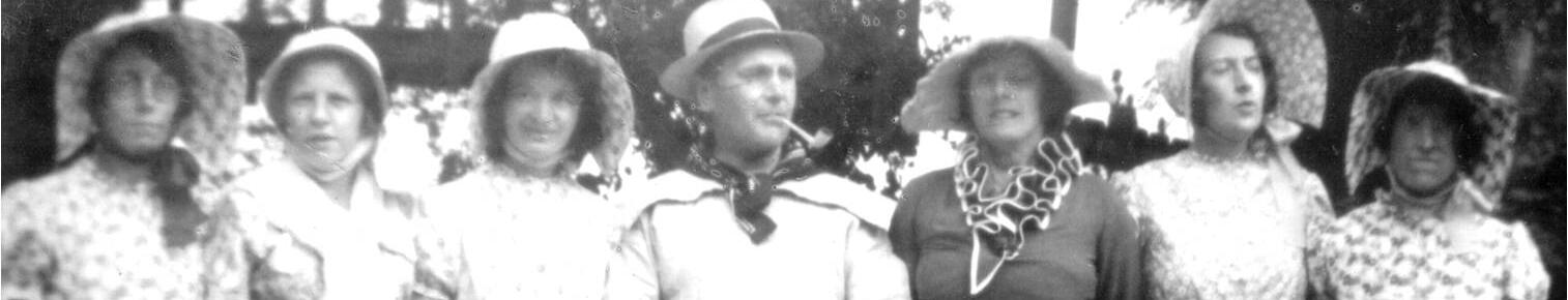 1 Companion Players. Back (L-R): Mrs Box, Rosalie Hancock, Mrs McWilliams, Mr McWilliams, Mrs Yardley, Josie Hopcroft. Front (L-R): -, Edith Hopcroft, Peggy Neale, Marry Skinner