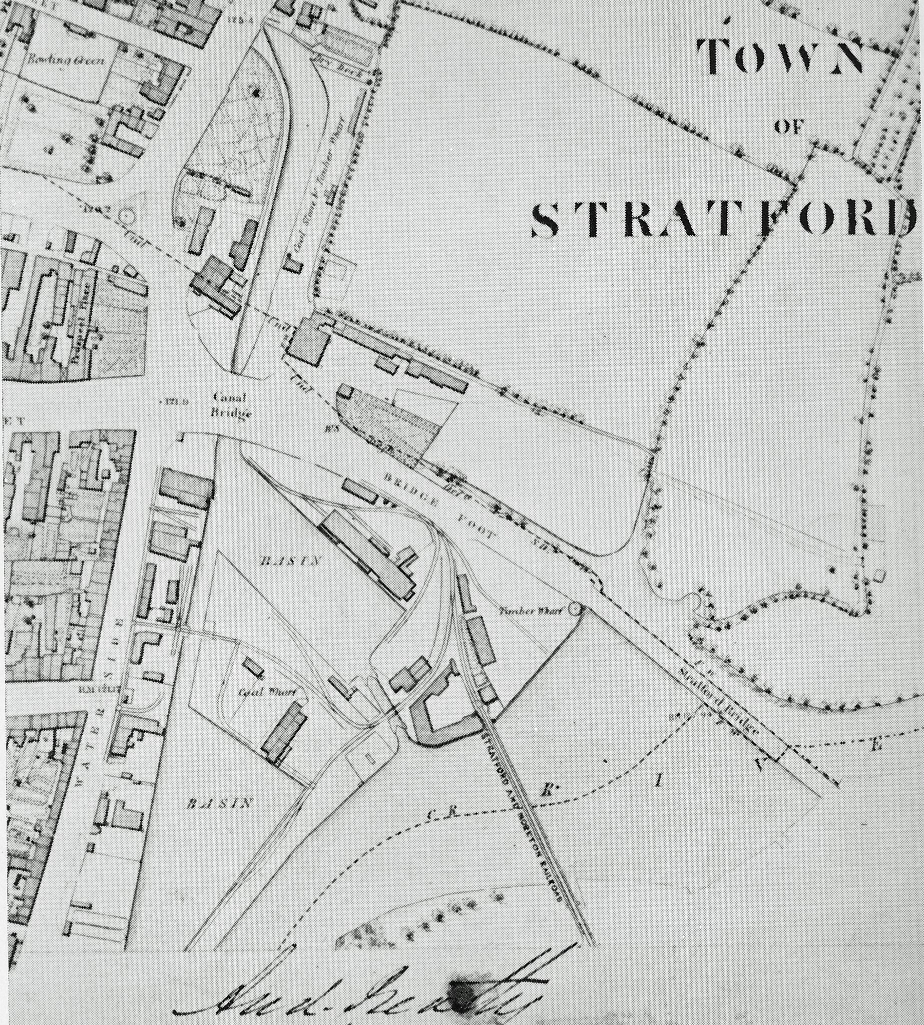 4 Plan of Stratford Basin on the late c19th. Note that then entire Bancroft area was a canal basin with associated warehousing