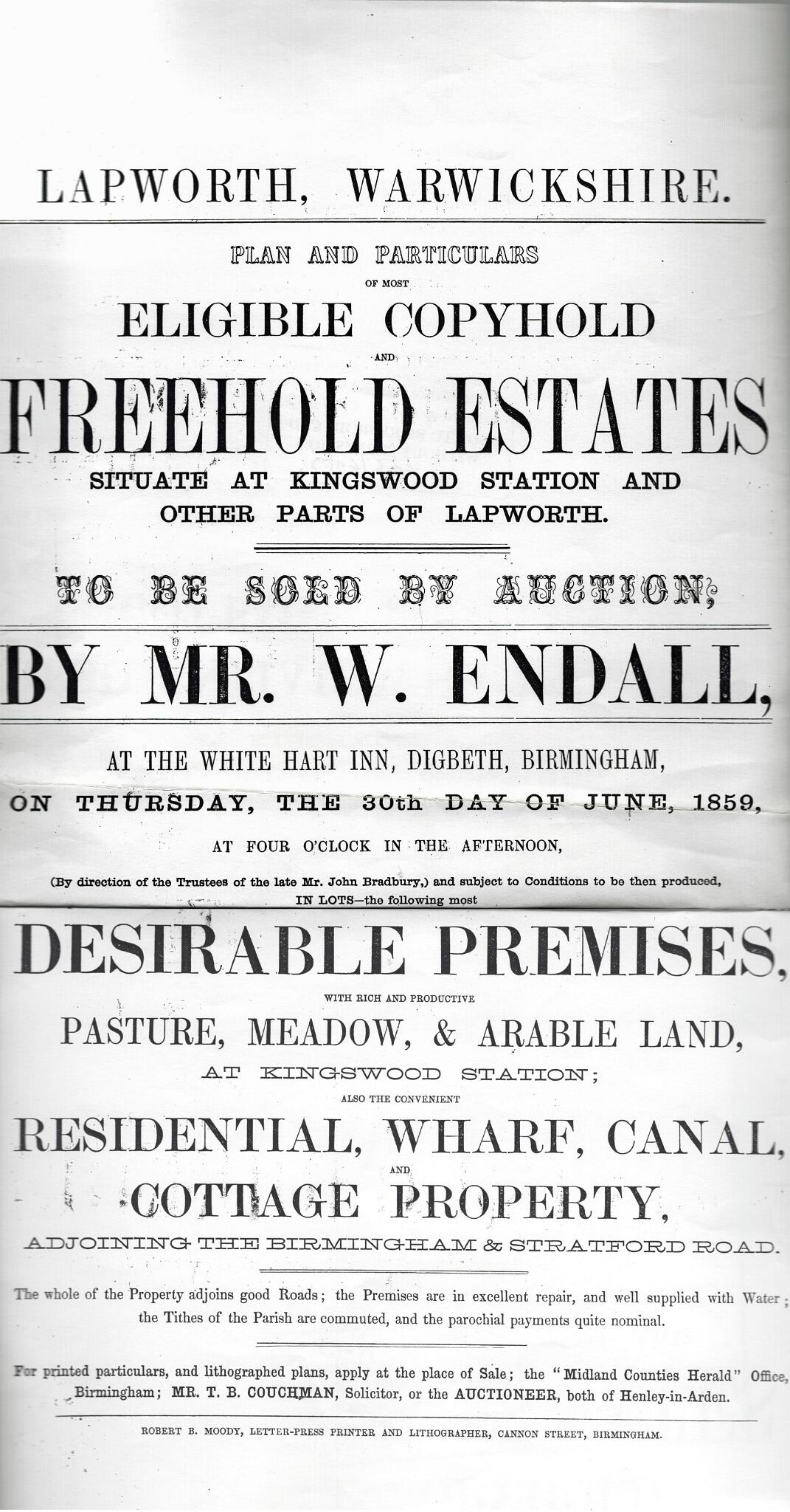 19 LAPWORTH WHARF Branch Canal.pdf Plan of old Lapworth Wharf from its sale in 1859