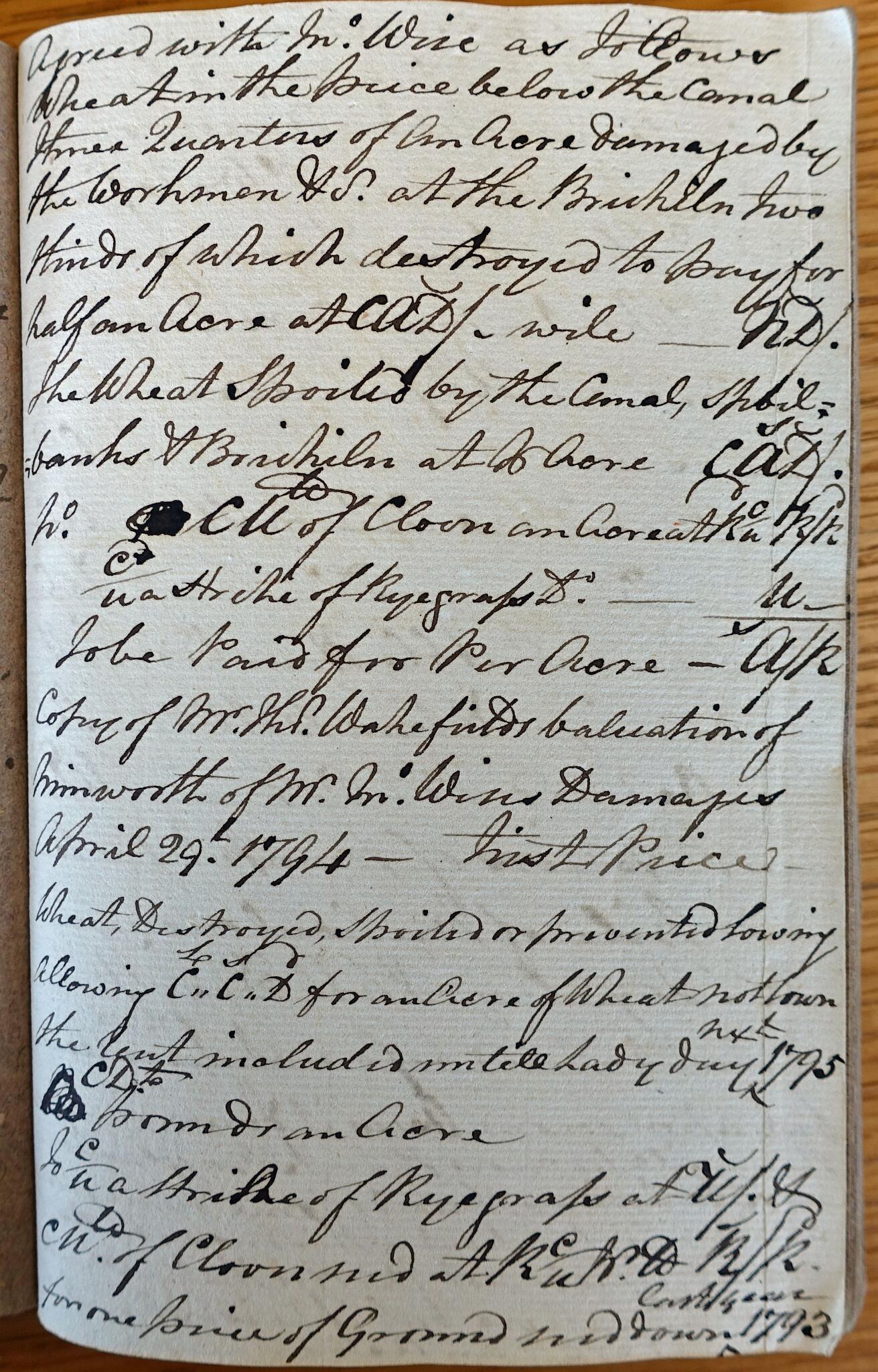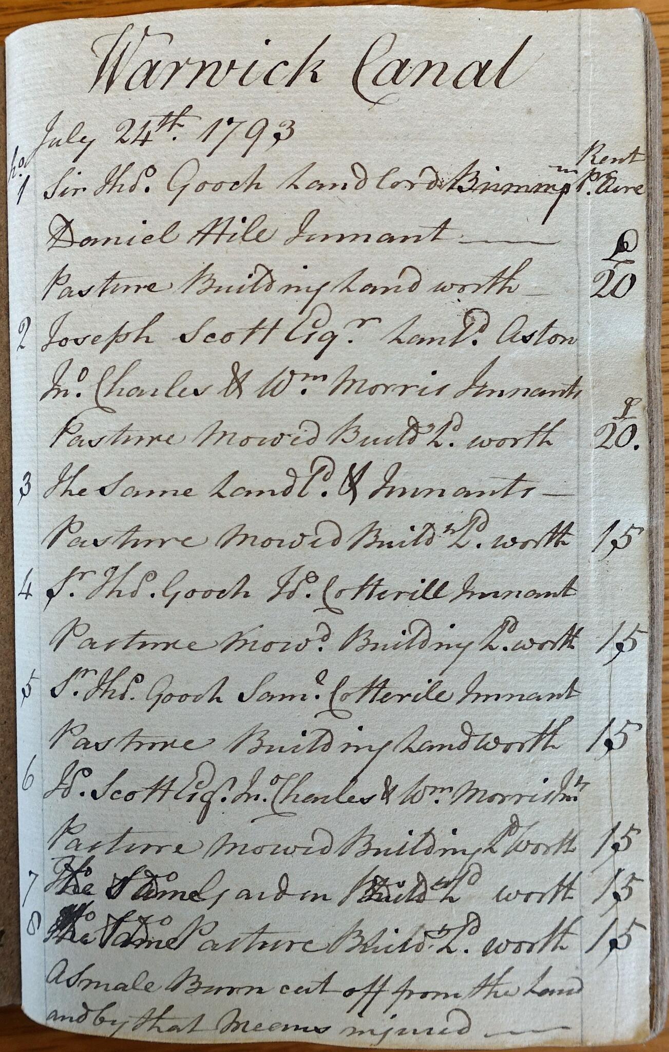 10 Extract from the land valuer's notebook recording compensation paid to landowners for damage caused during canal cutting