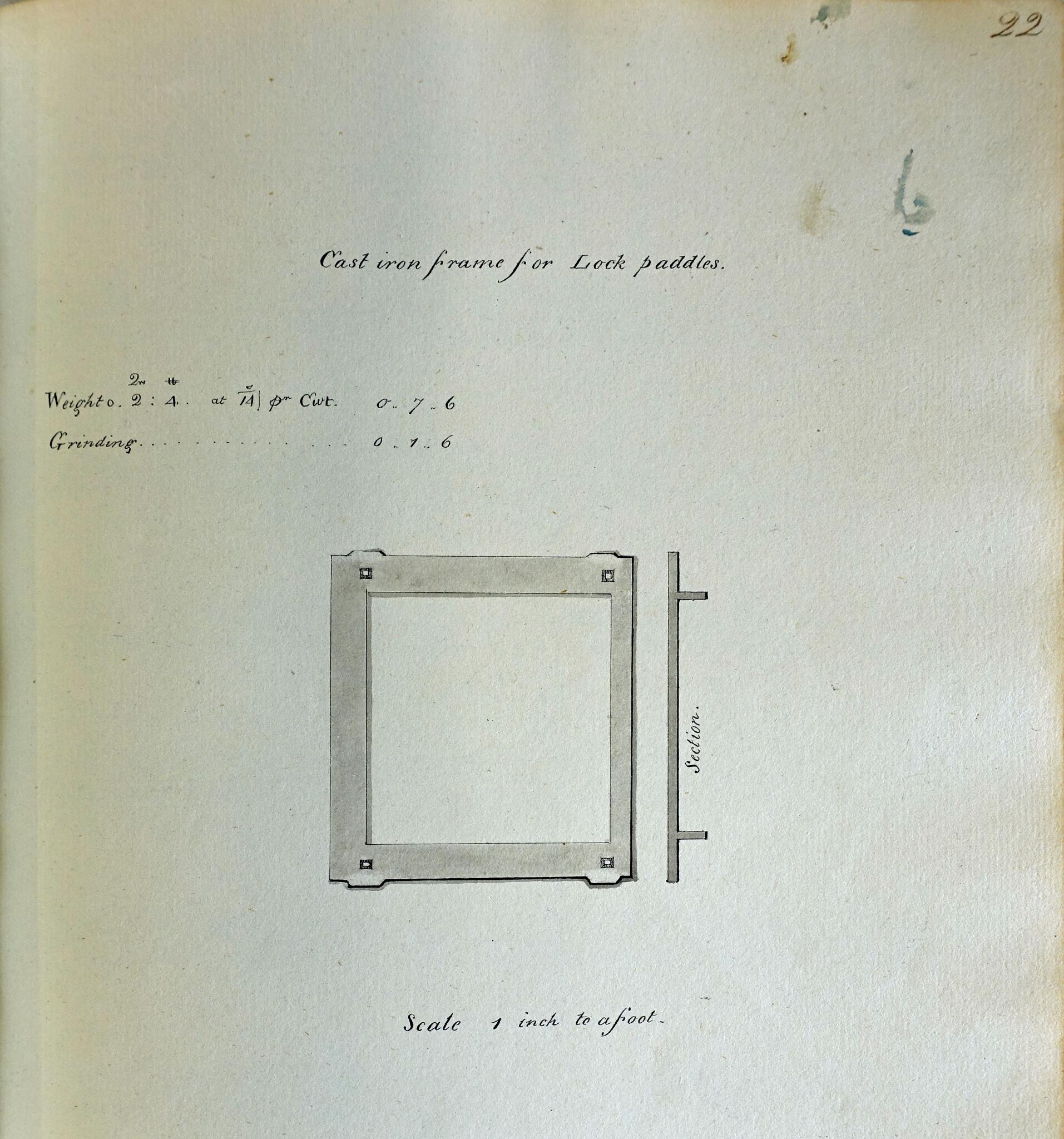 17 Cast iron frame for lock paddles