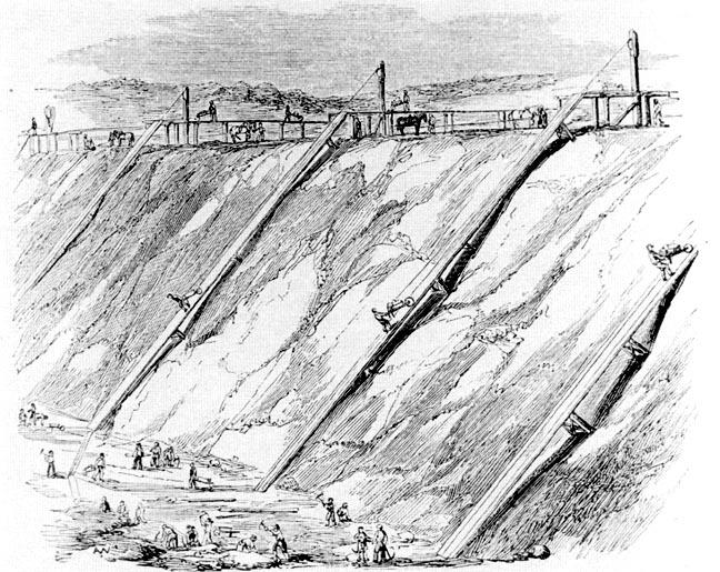 4 A later drawing (not by Witton) of horse gins in use during the excavation of a cutting like that at Rowington