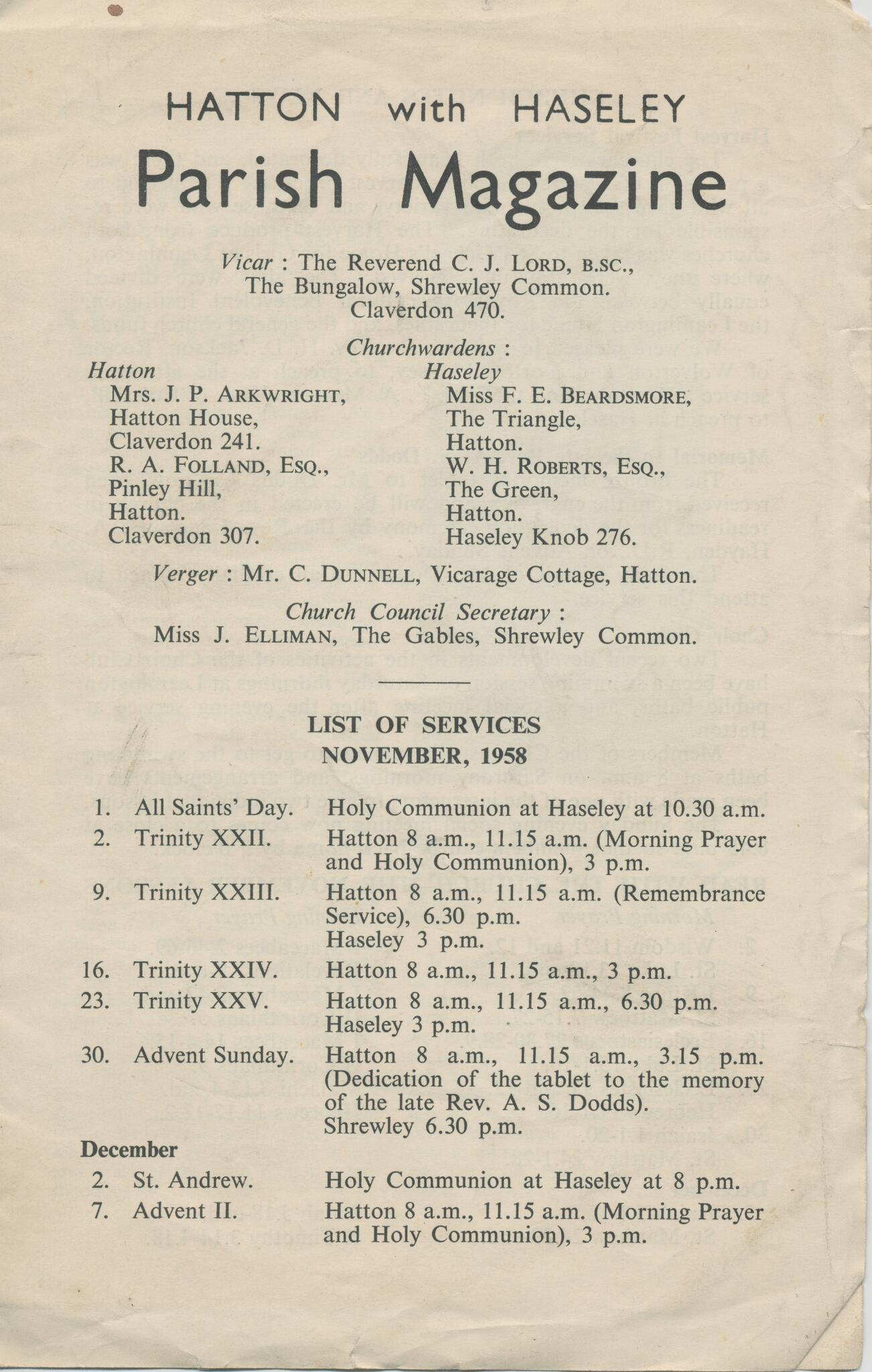 7 Hatton and Haseley Parish Magazine - Nov 1958