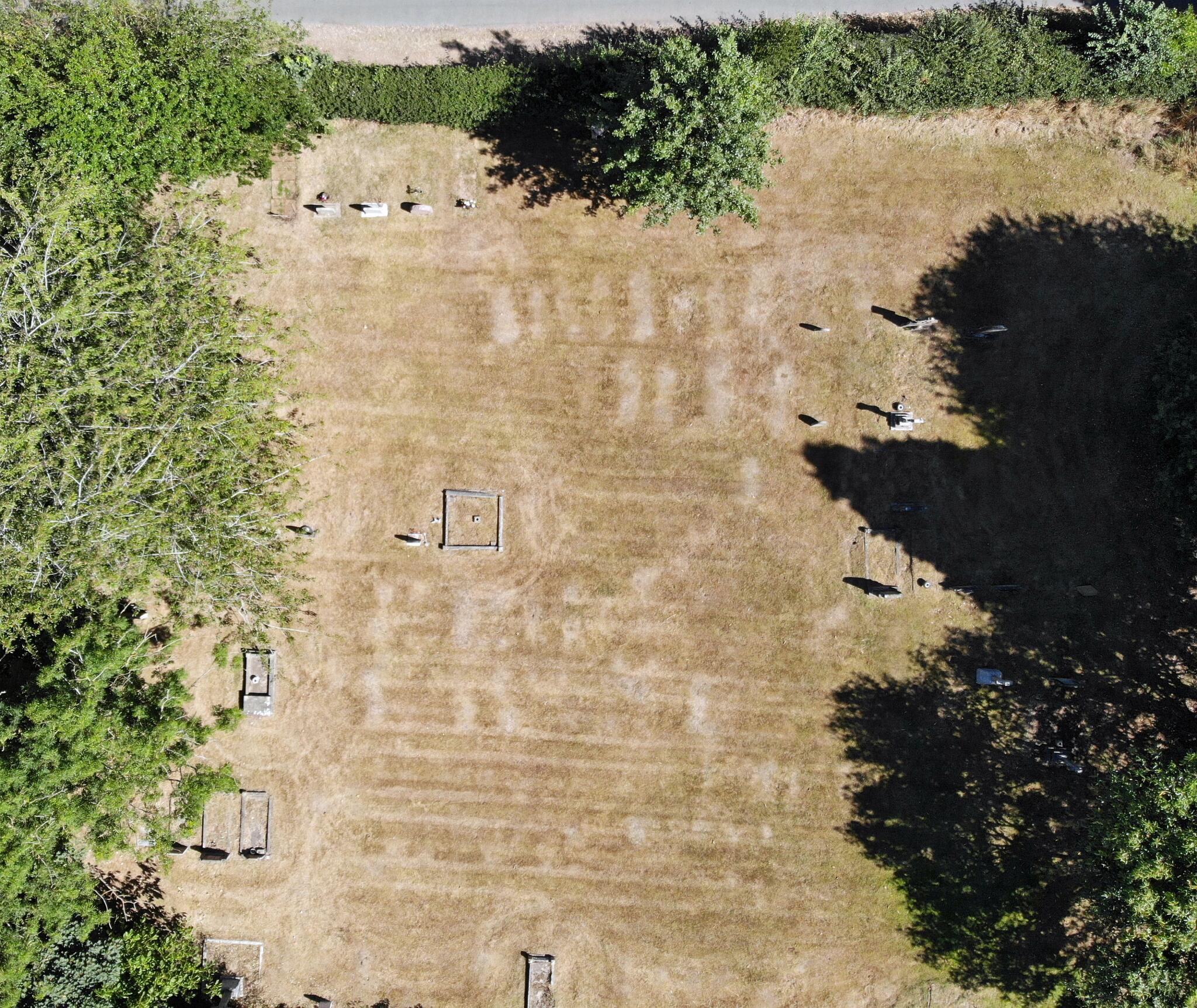 8 Northern, 1887, section of Haseley graveyard showing hints of a large number of now unmarked graves revealed by the 2022 drought