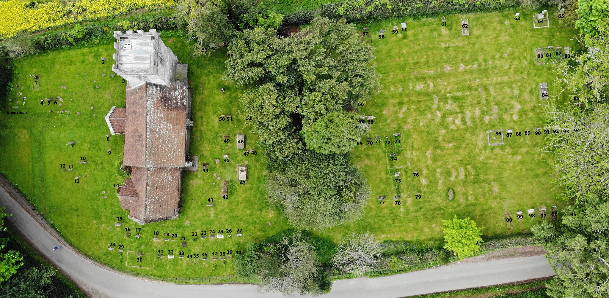 3 Full view of the Haseley Graveyard annotated with grave numbers