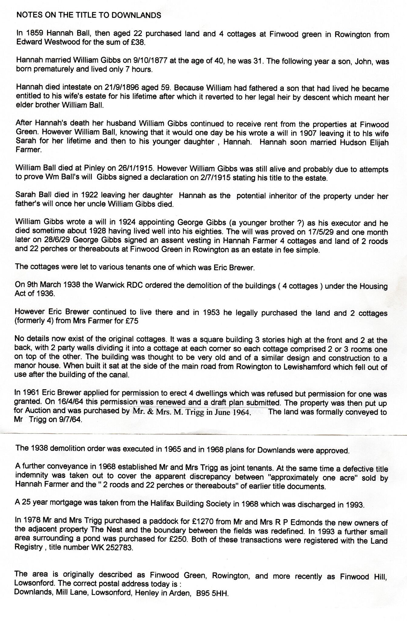 2 Notes on the title to Downlands