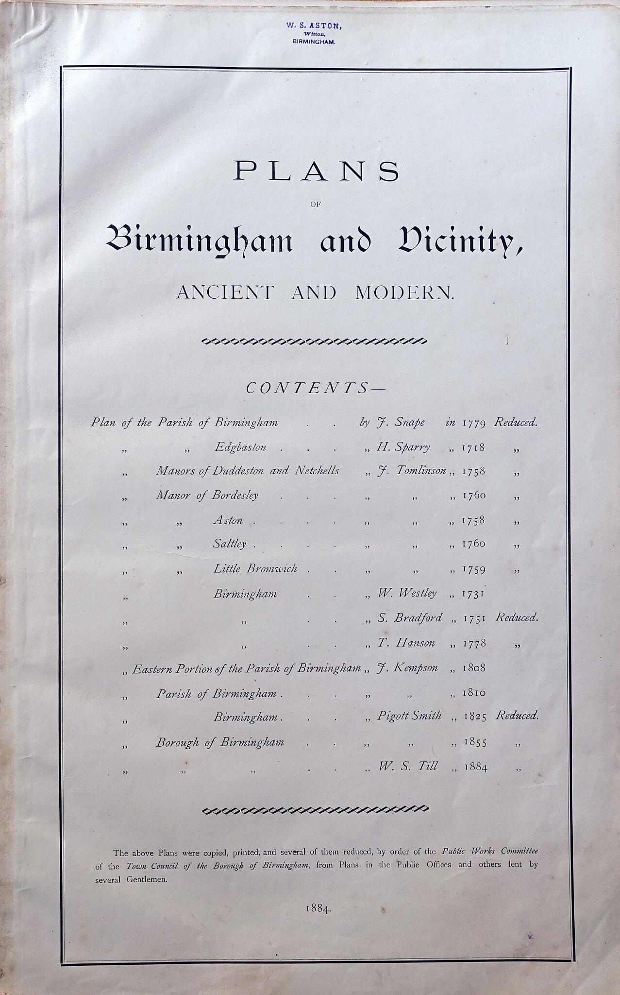 1 A book of old maps of Birmingham published by the Public Works Committee of Birmingham Town Council in 1884 2 3 4 5 6 7 8 9 10 11 12 13 14 15 16 17 18 New images Enclosure Map 1847