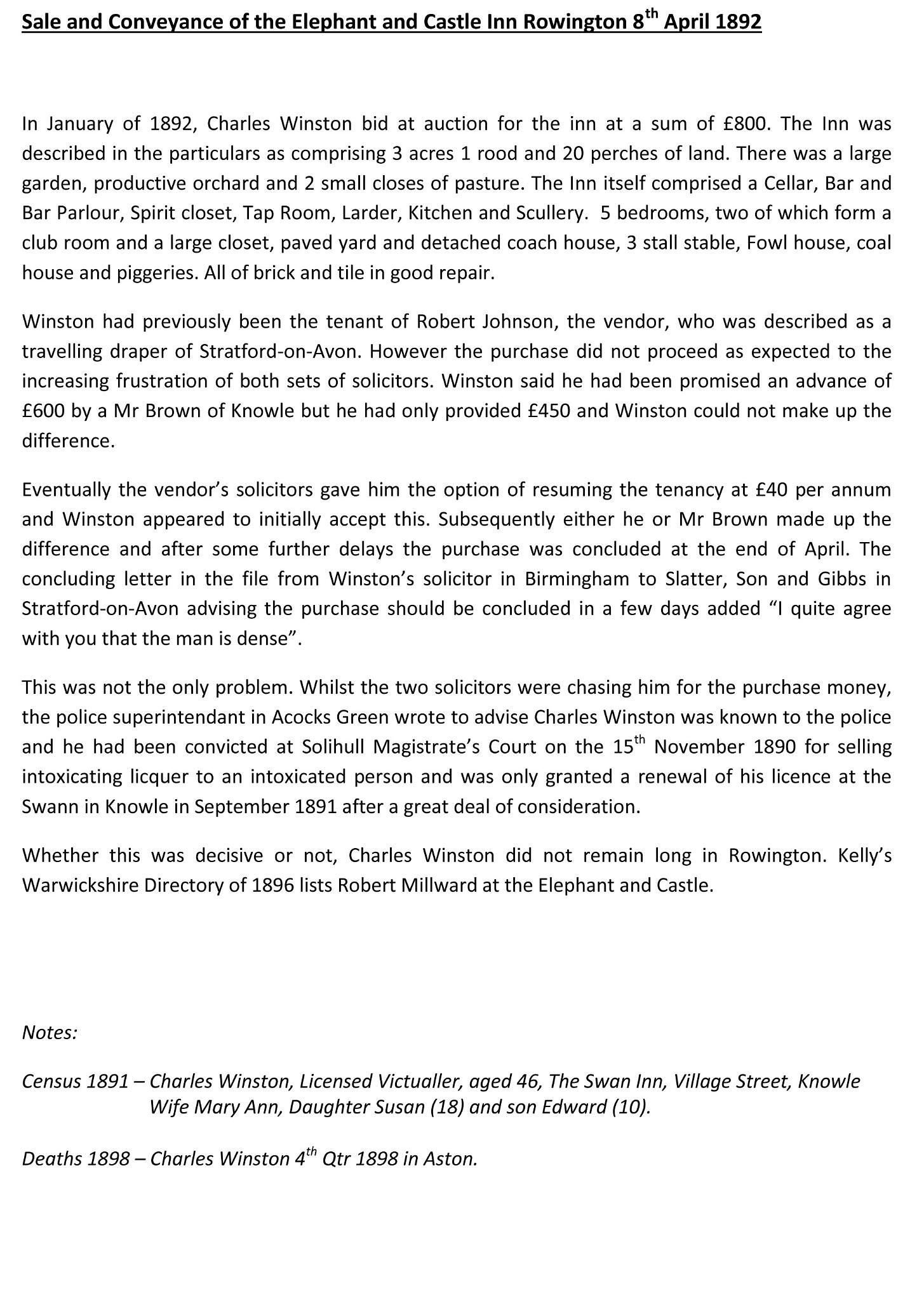 12 Sale of Elephant and Castle in 1892 - Charles Winston