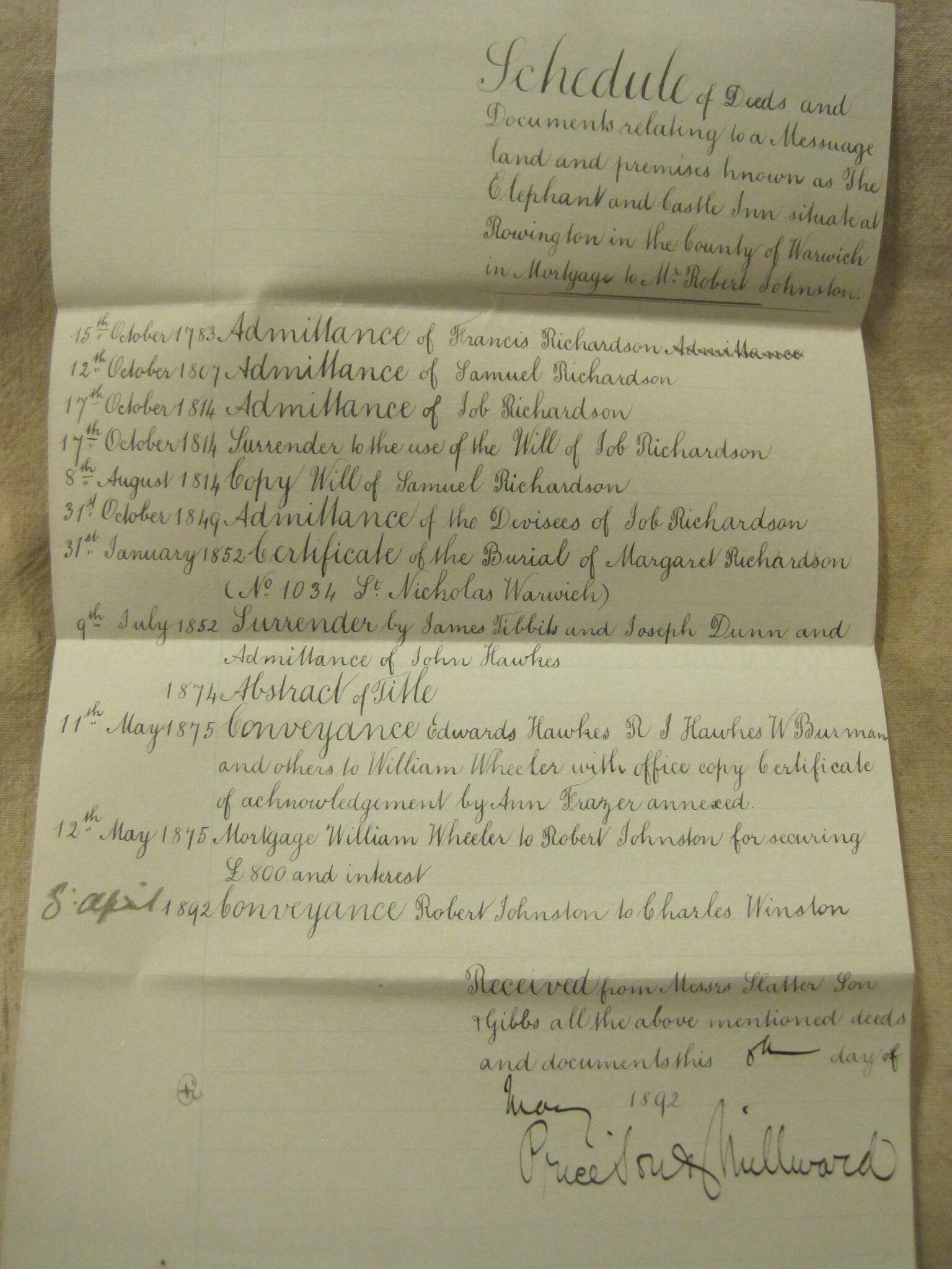 11 Schedule of title for the Elephant and Castle for its sale in 1892