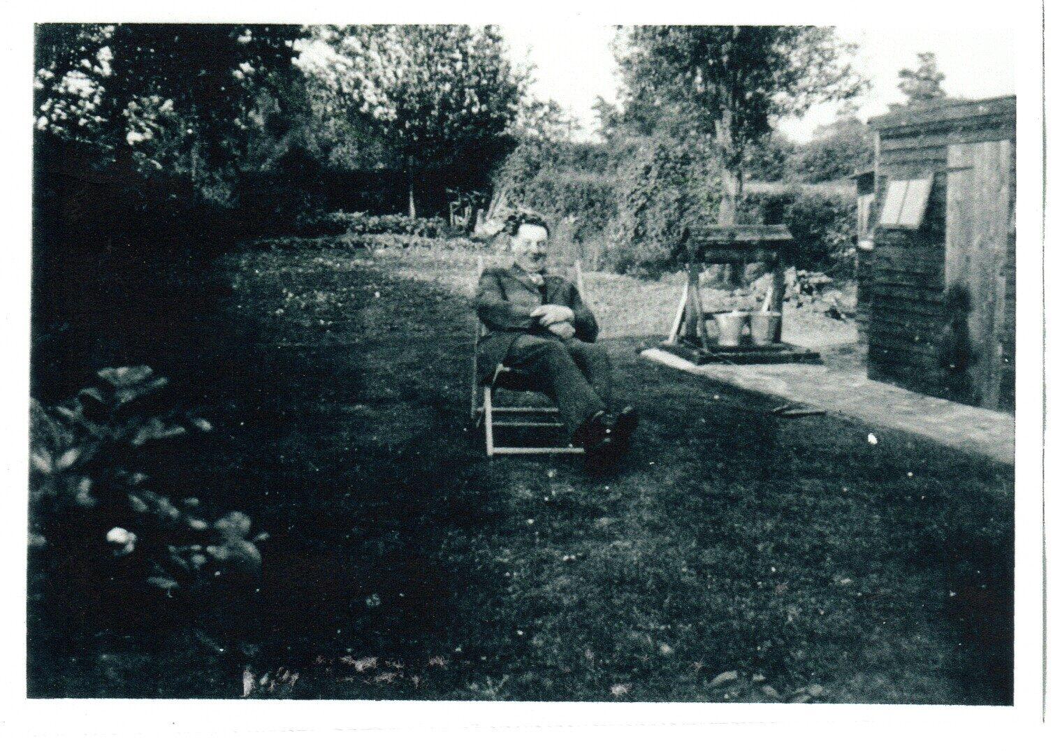 8 AJ Paddock in the garden of Poplar Cottage 1938. The well shown was still in good condition in 2000s