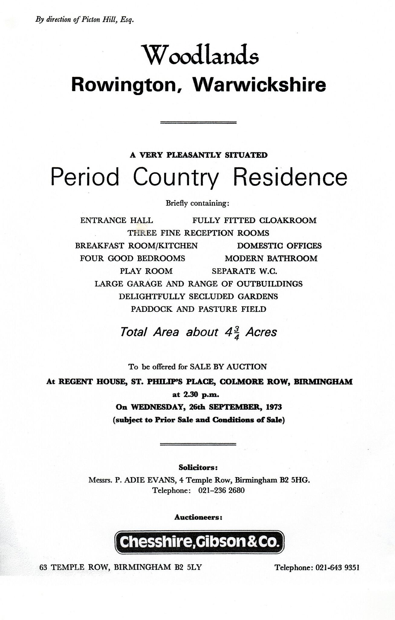 1 Woodlands Farm 2 Woodlands Farm from sale in 1973 3 Woodlands Farm sale 1973 4 Woodlands Farm sale 1973 5 Woodlands Farm Sale Catalogue 1943 6 Woodlands Farm sale 1980s New images Rowington GreenManor House