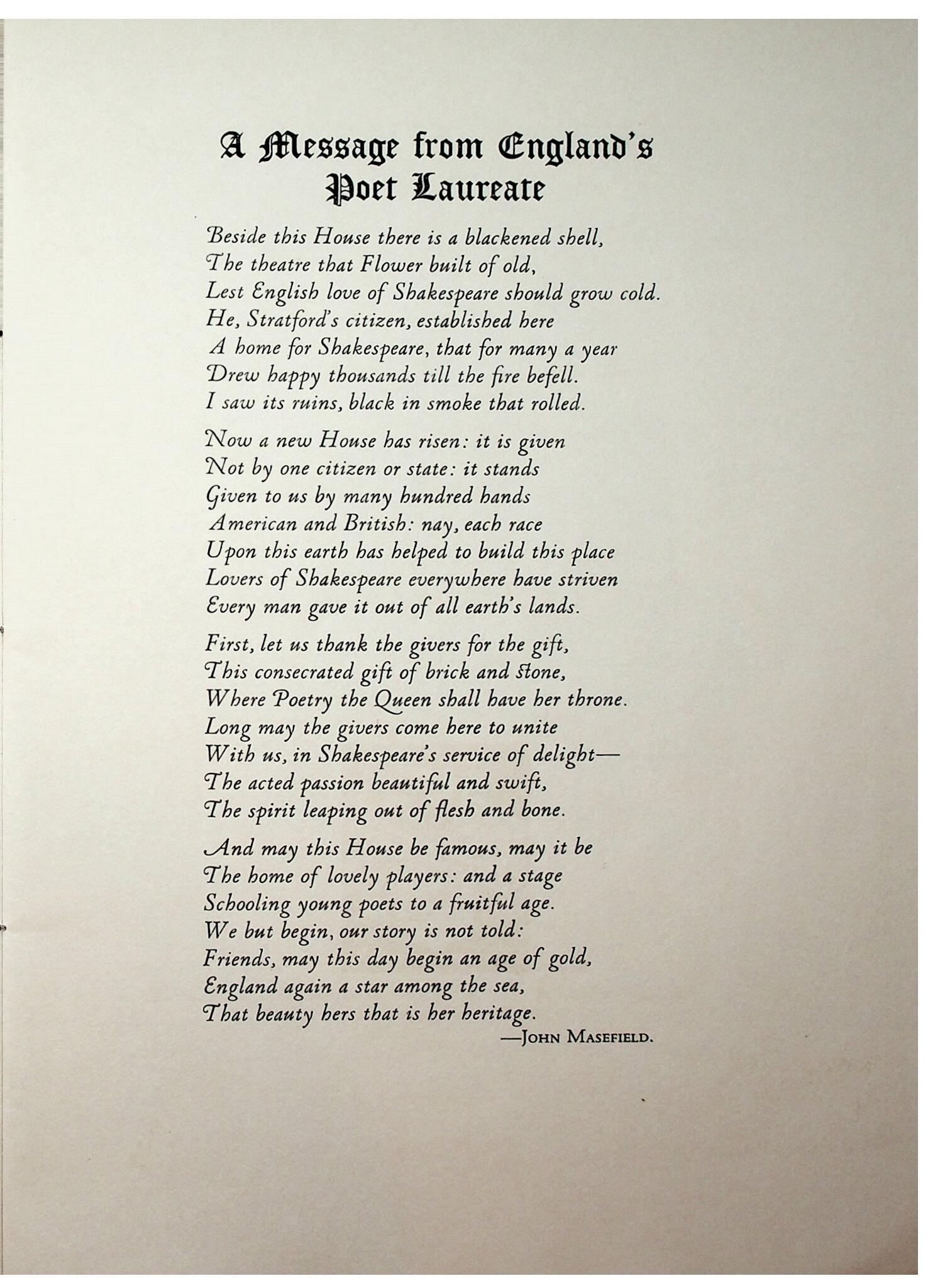 6 Poem by then Poet Laureate John Masefield from Souvenir Programme from opening of rebuilt Memorial Theatre on 23rd April 1932