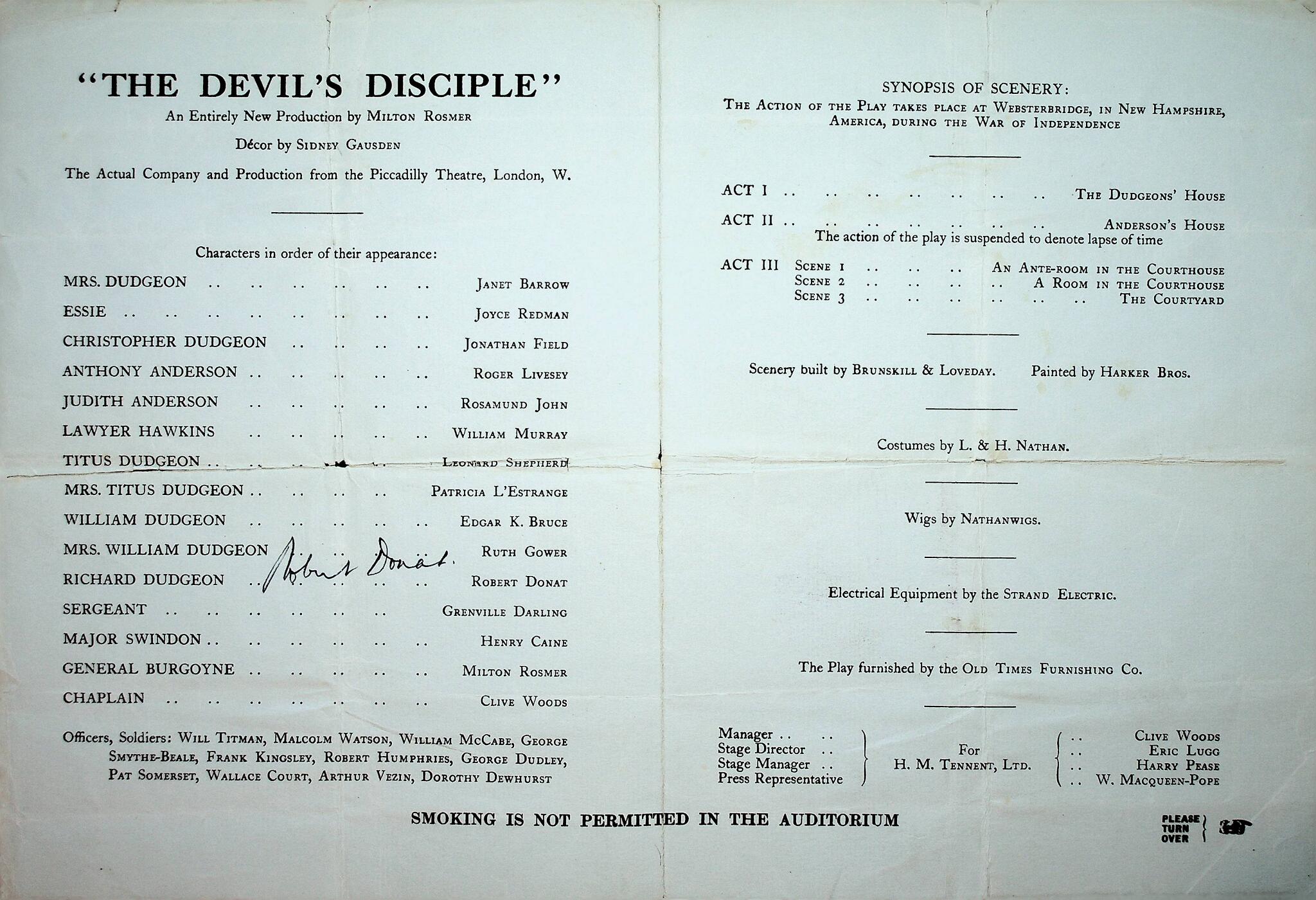 12 Programme for "The Devil's Disciple" performed at the new Memorial Theatre in December 1940, starring Robert Donat who autographed this copy