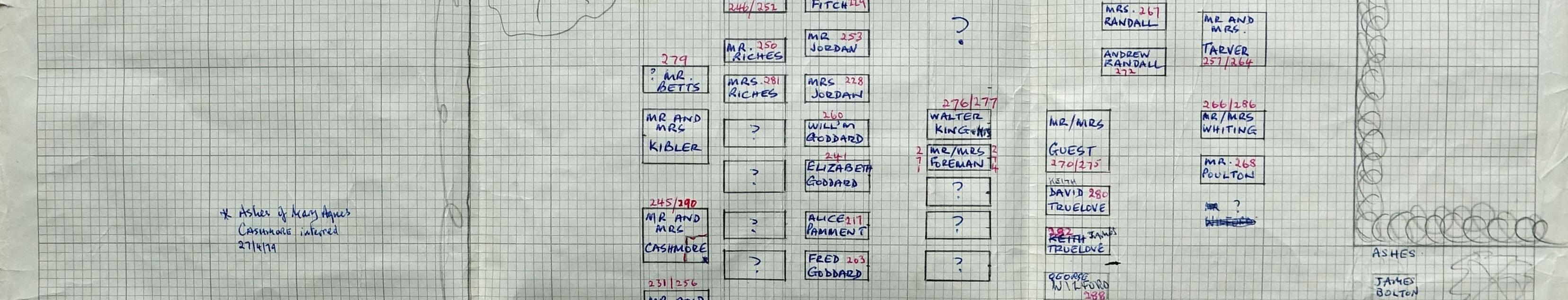 8 Aerial photo of Wroxall Burial Ground annotated with grave numbers