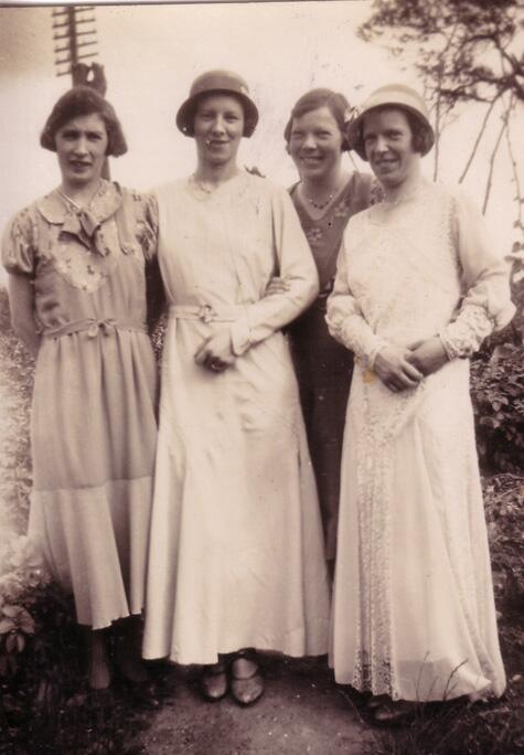 9 Mrs Florence Sweetman (2nd left) at Tyesley after the wedding in going away clothes with bridesmaids