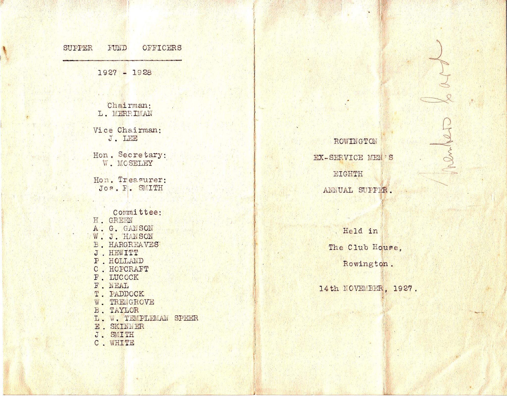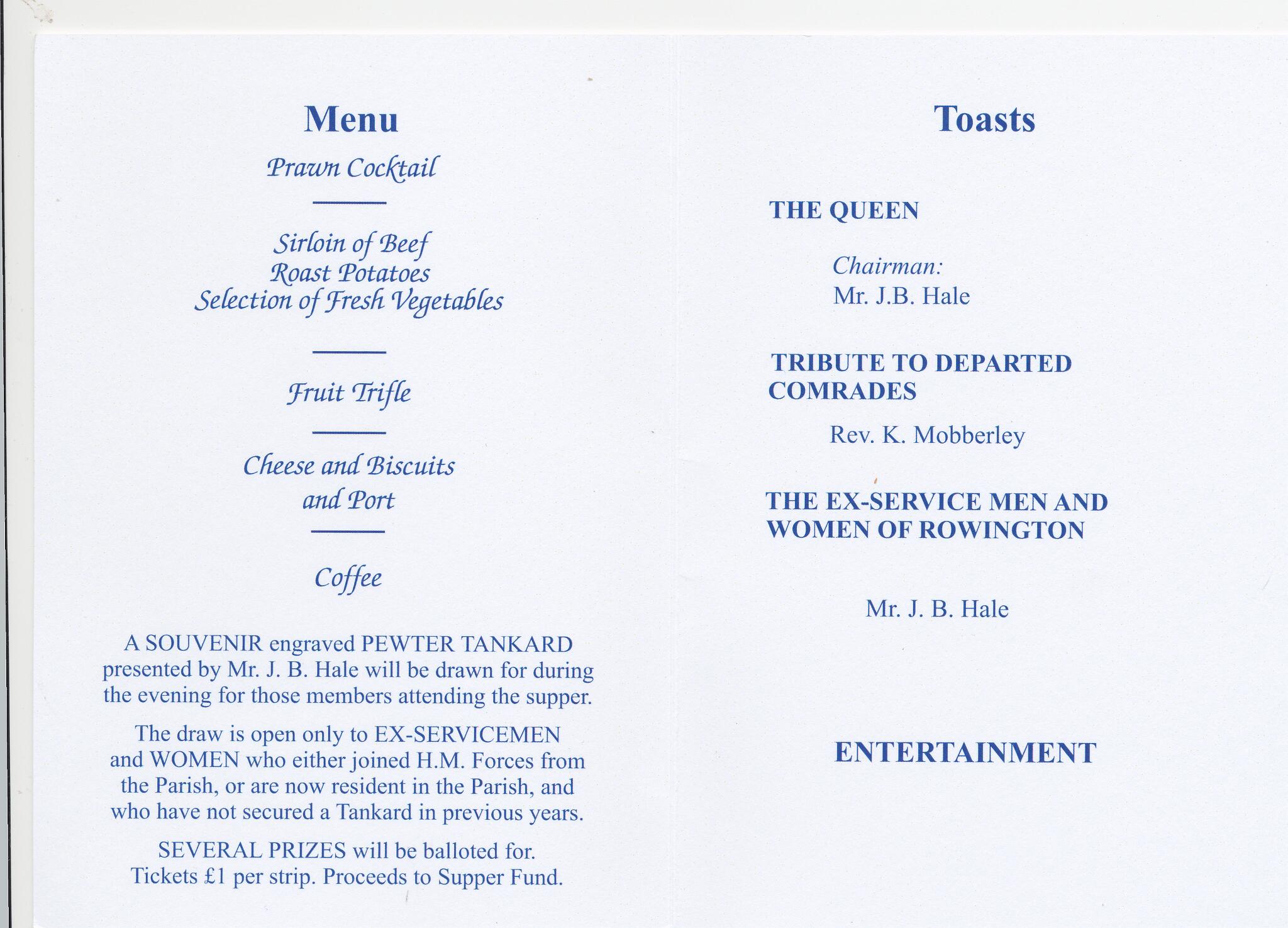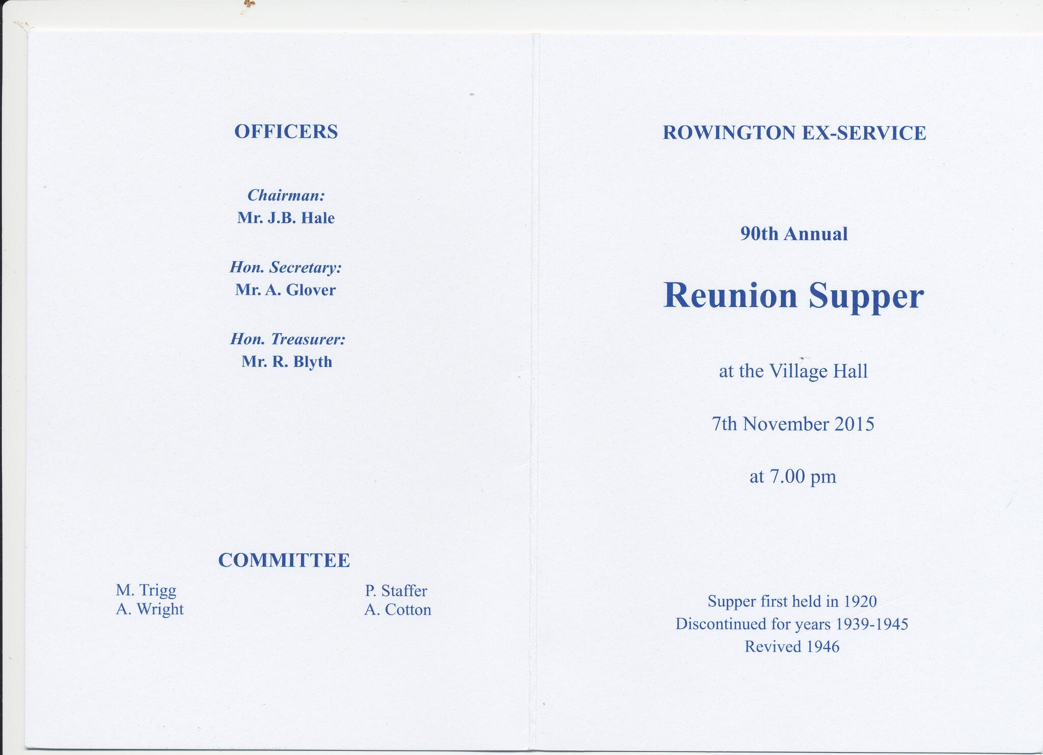 19 Programme from the final Ex-Servicemen's Supper held in November 2015