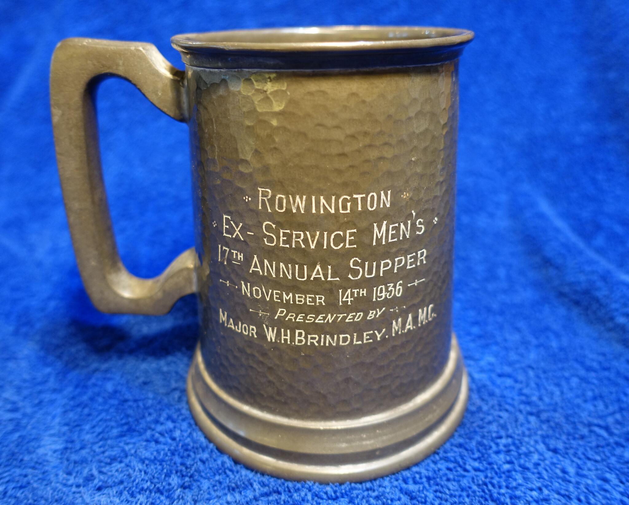 20 Tankard presented by Major Brindley at the 17th Ex-Servicemen's Supper in 1936