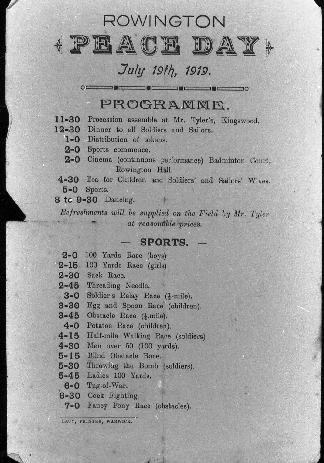 11 Peace Day Programme, 1919