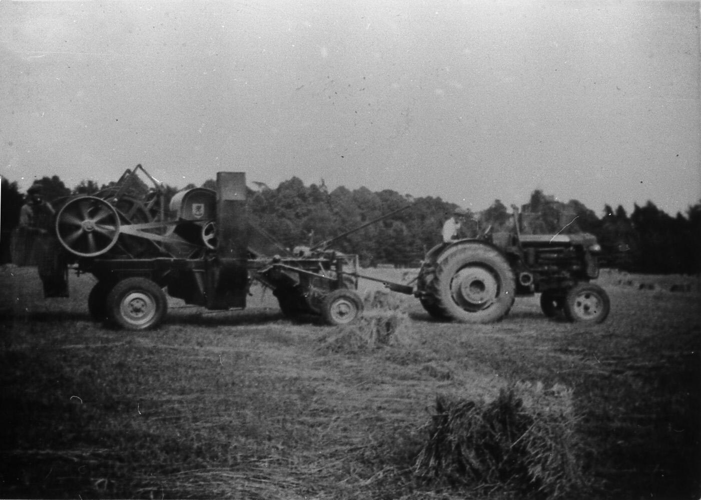 13 Cecil Tolley on Fordson Major diesel tractor with thrashing drum at Ivy House Farm - late 1940s