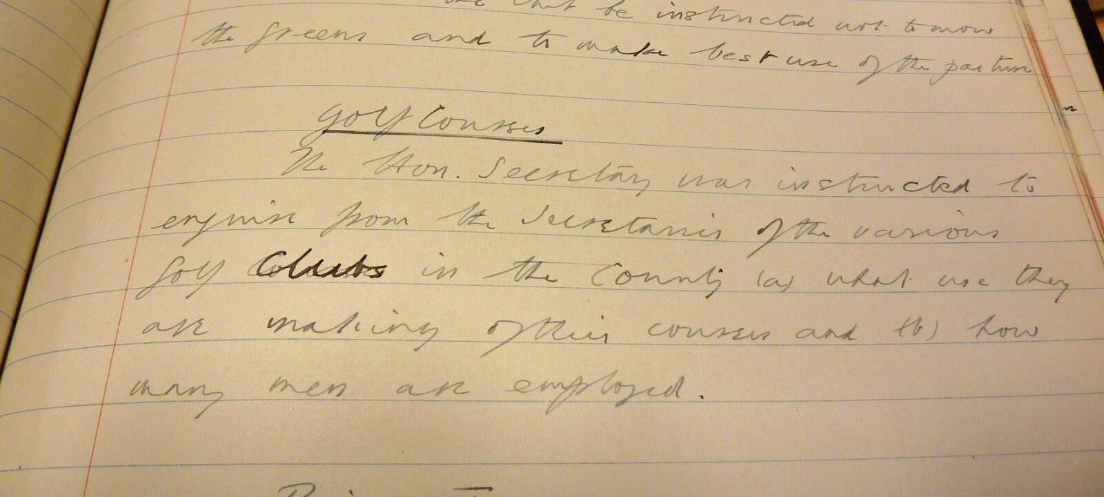 1 Extract from the minutes of the Warwick area War Agricultural Executive Committee in 1917 showing how even golf courses were put under cultivation