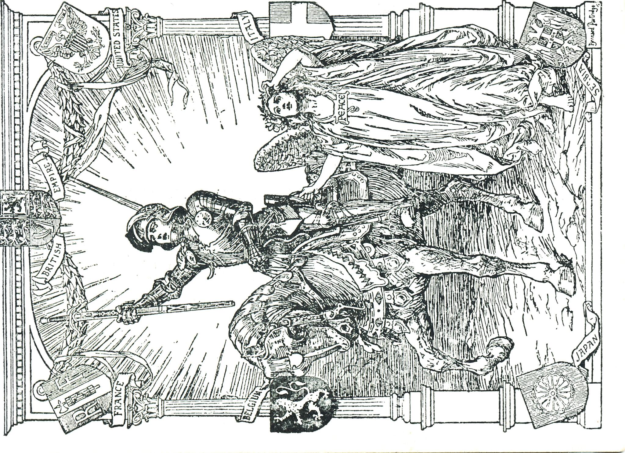 6 Cartoon from Punch printed on the front of Rowington Peace Celebration invitation - July 1919
