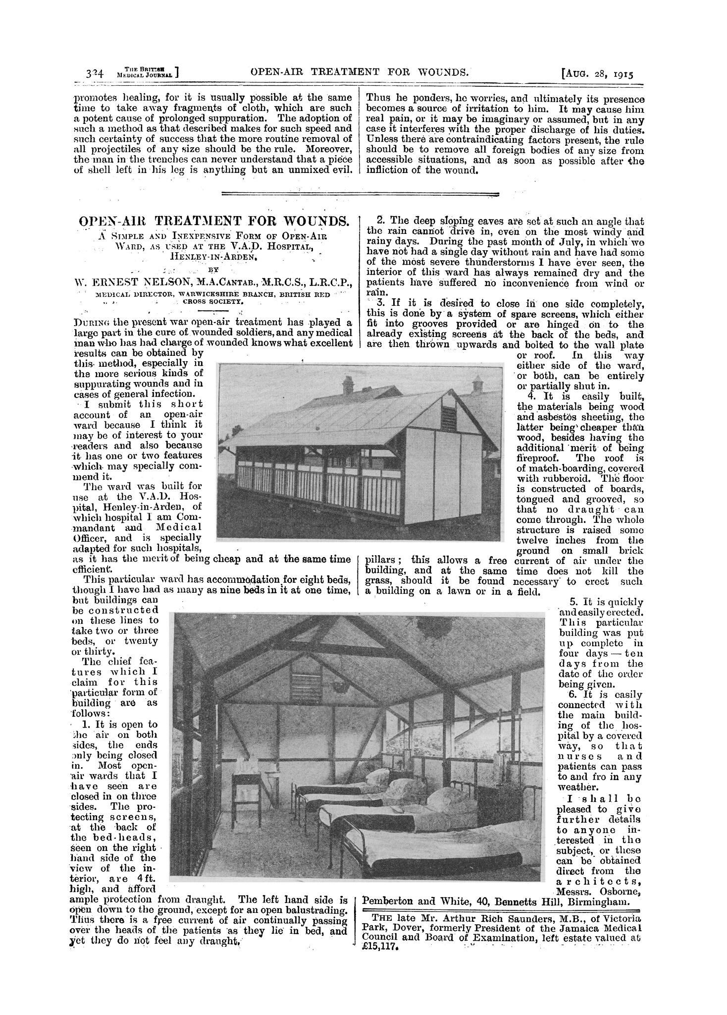 15 Article from the BMJ describing the pioneering use of open-air wards at Henley VAD hospital