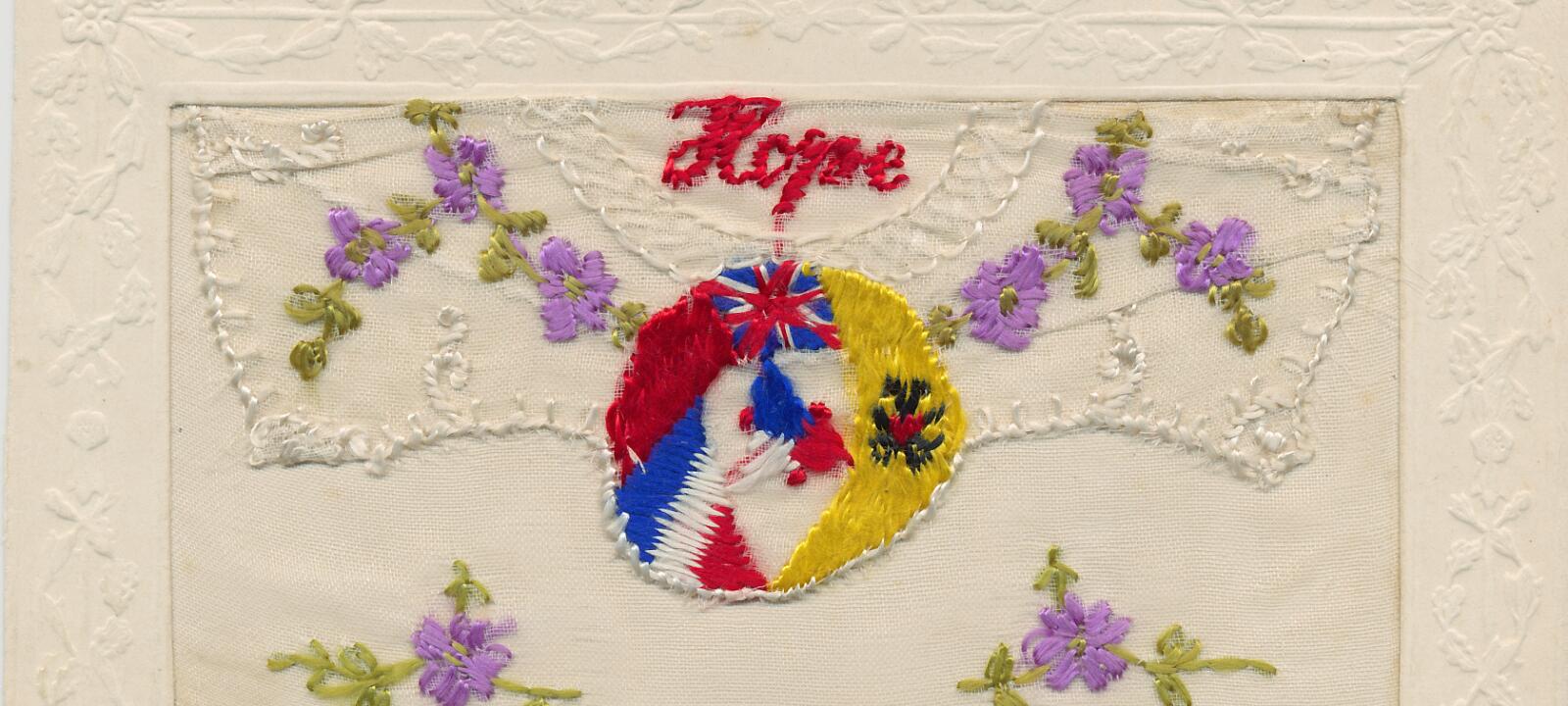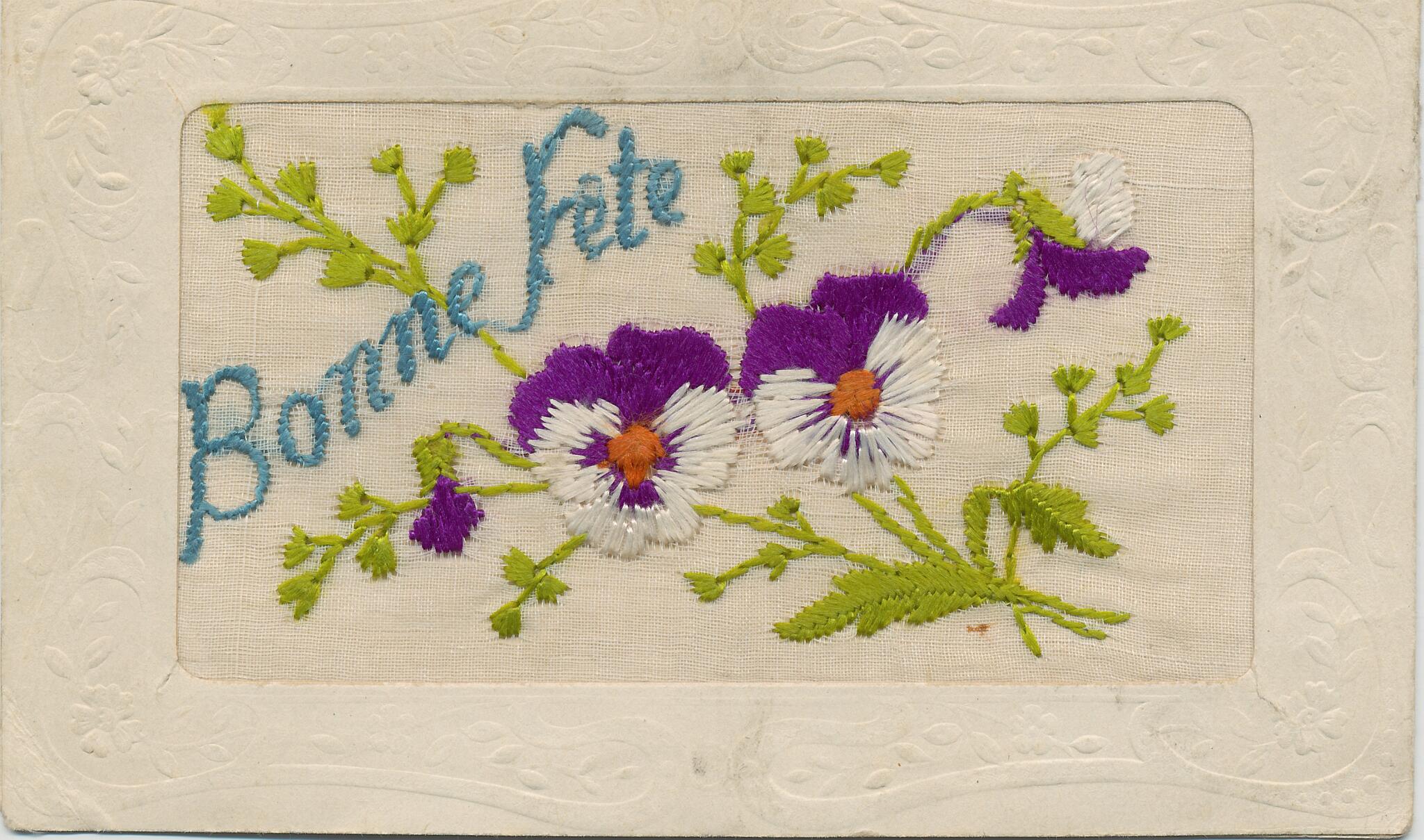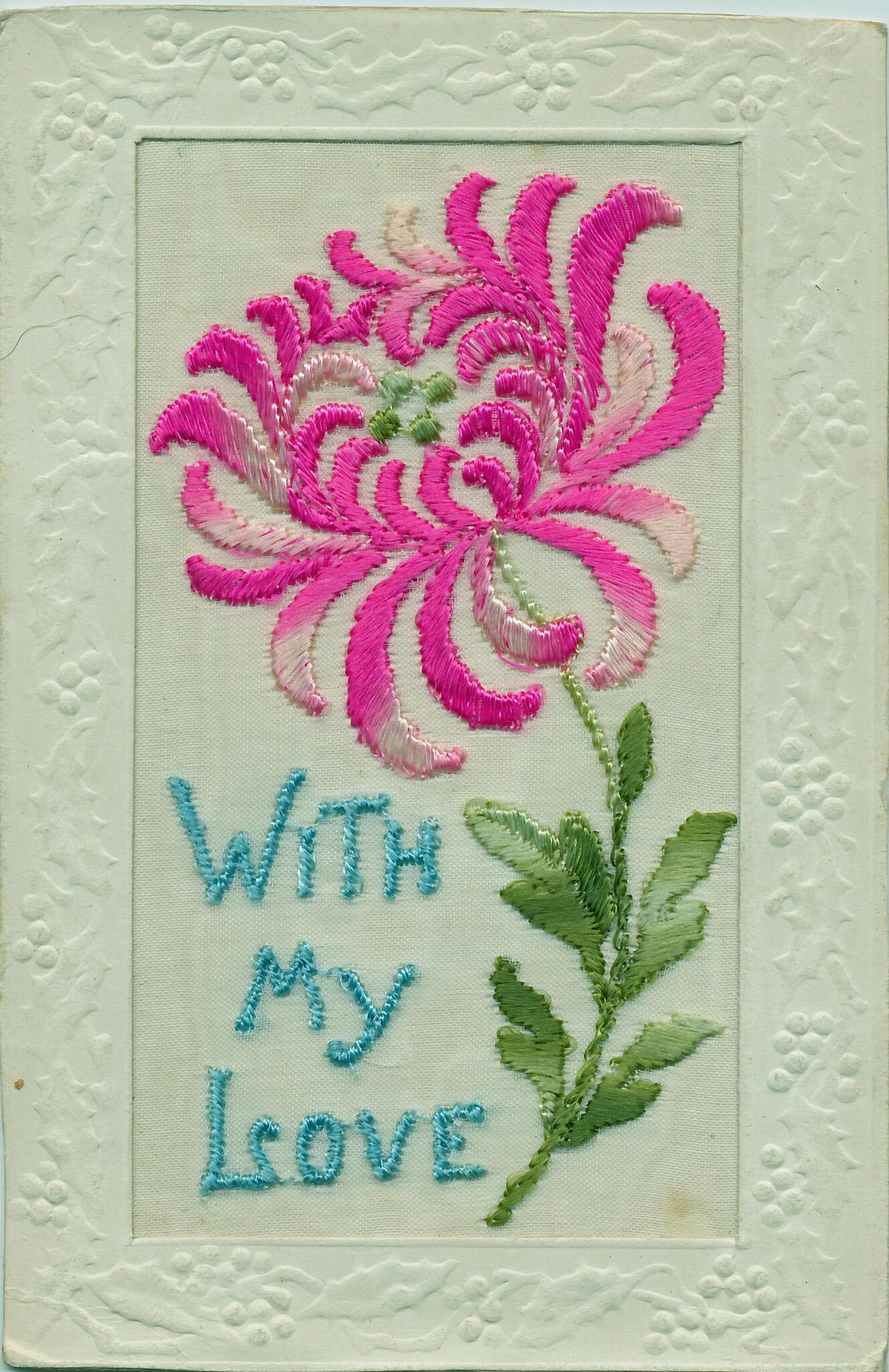 3 Embroidered postcard produced in France and sent from the trenches