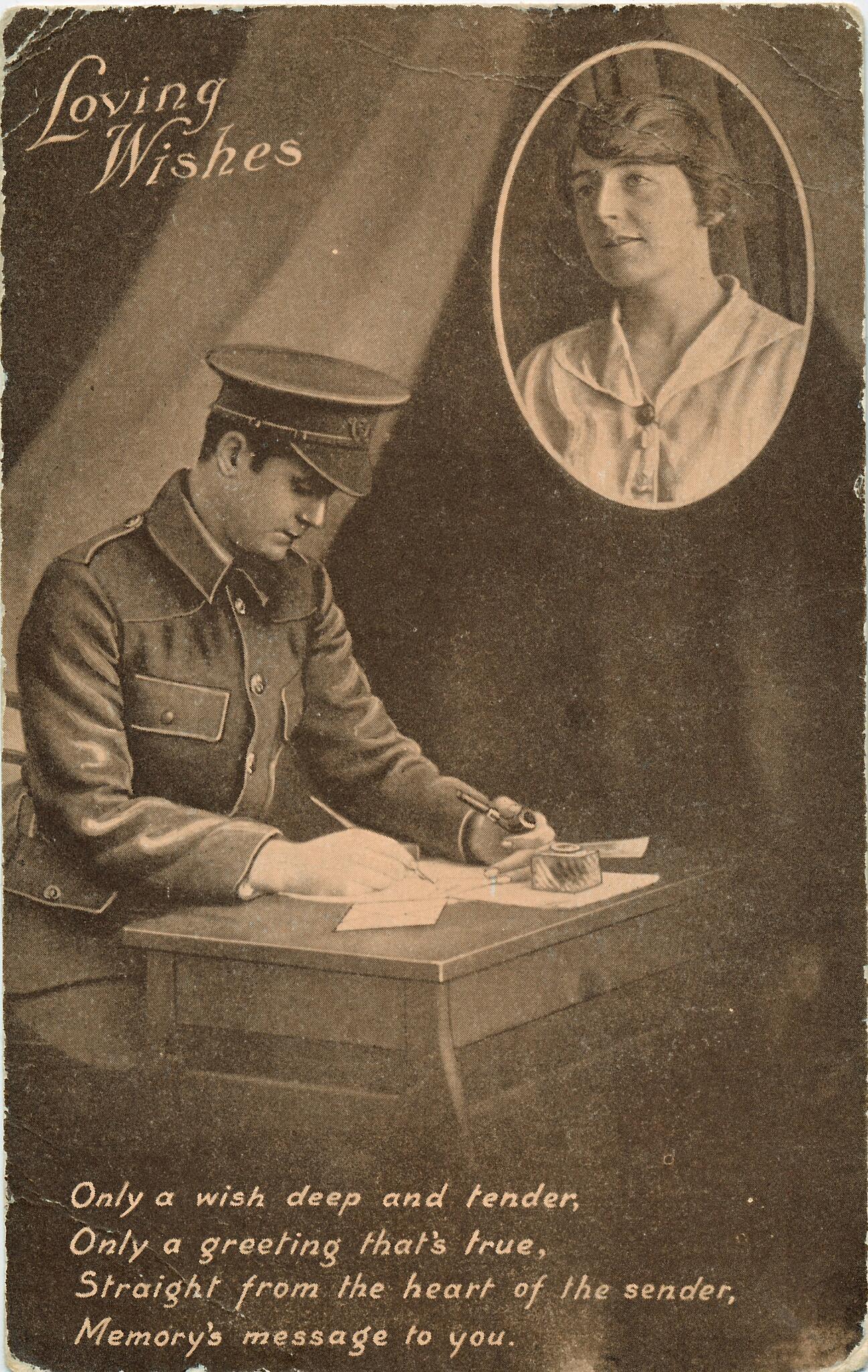 14 One of a range of postcards produced to encourage people in the UK to write to troops on the front line to aid morale